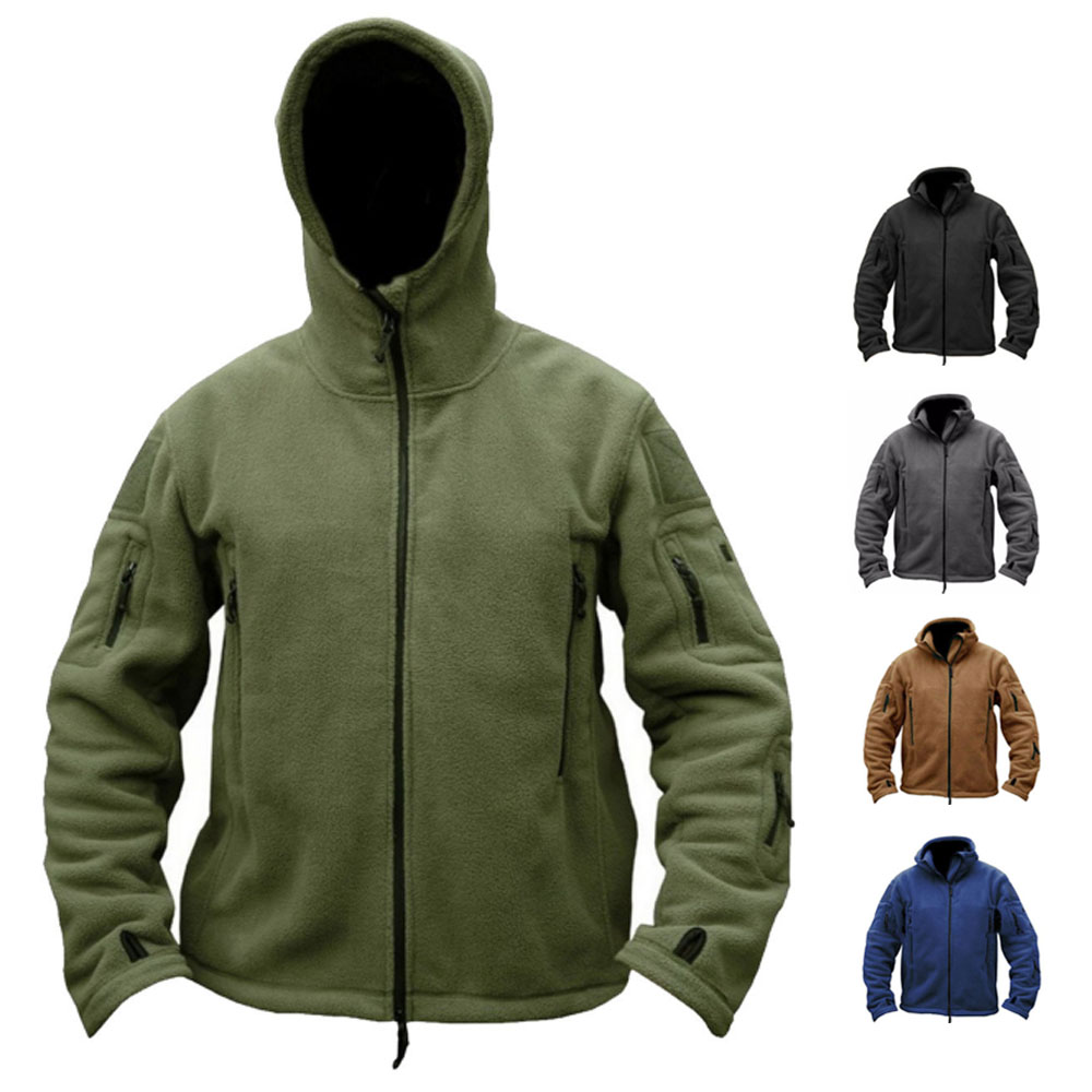 Men hooded tactical style jacket with ultra soft warm fleece.