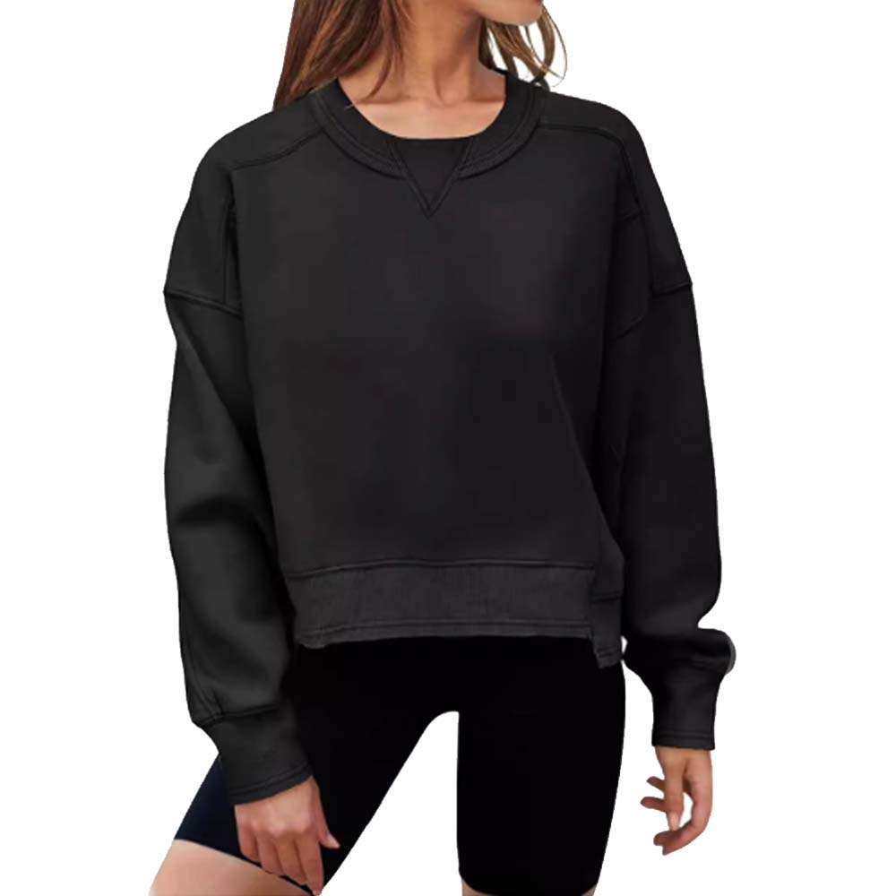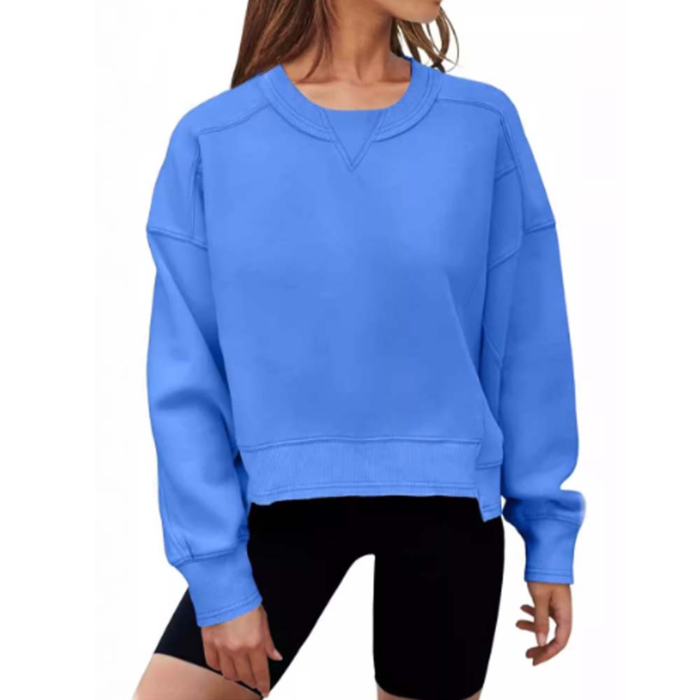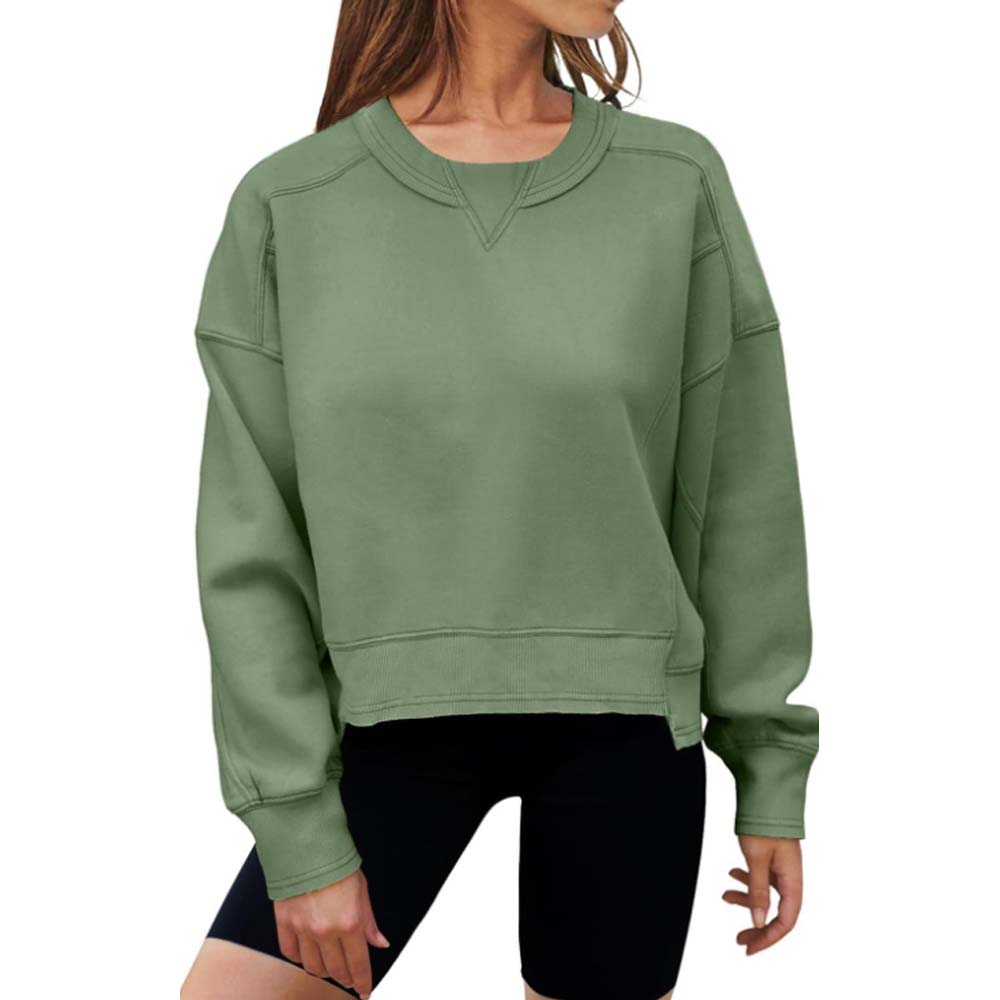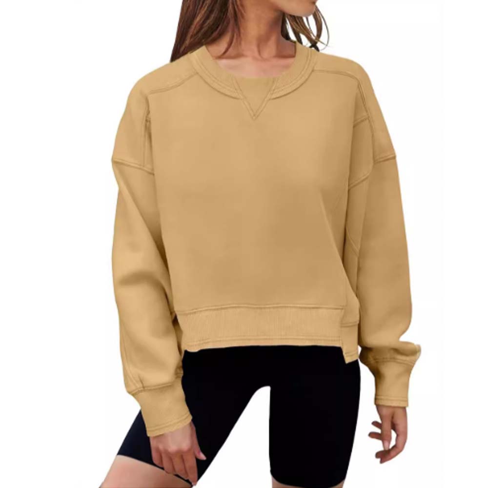 Crew neck, relaxed fit, long sleeves, banded edges, soft, thick fabrication, no closures, not lined.
