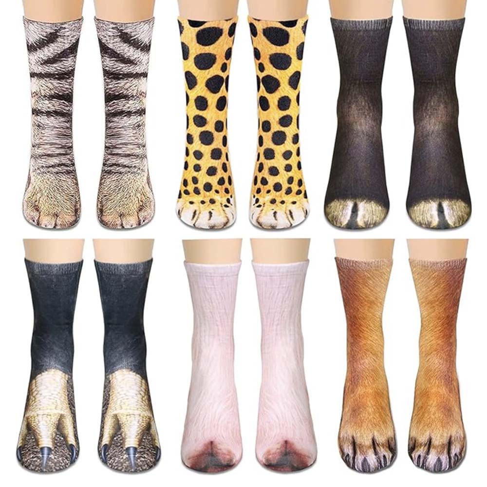 6 pairs 3D animal paw socks: Features 6 styles like cat, dog and eagle for vivid fun look.