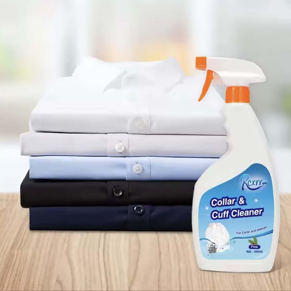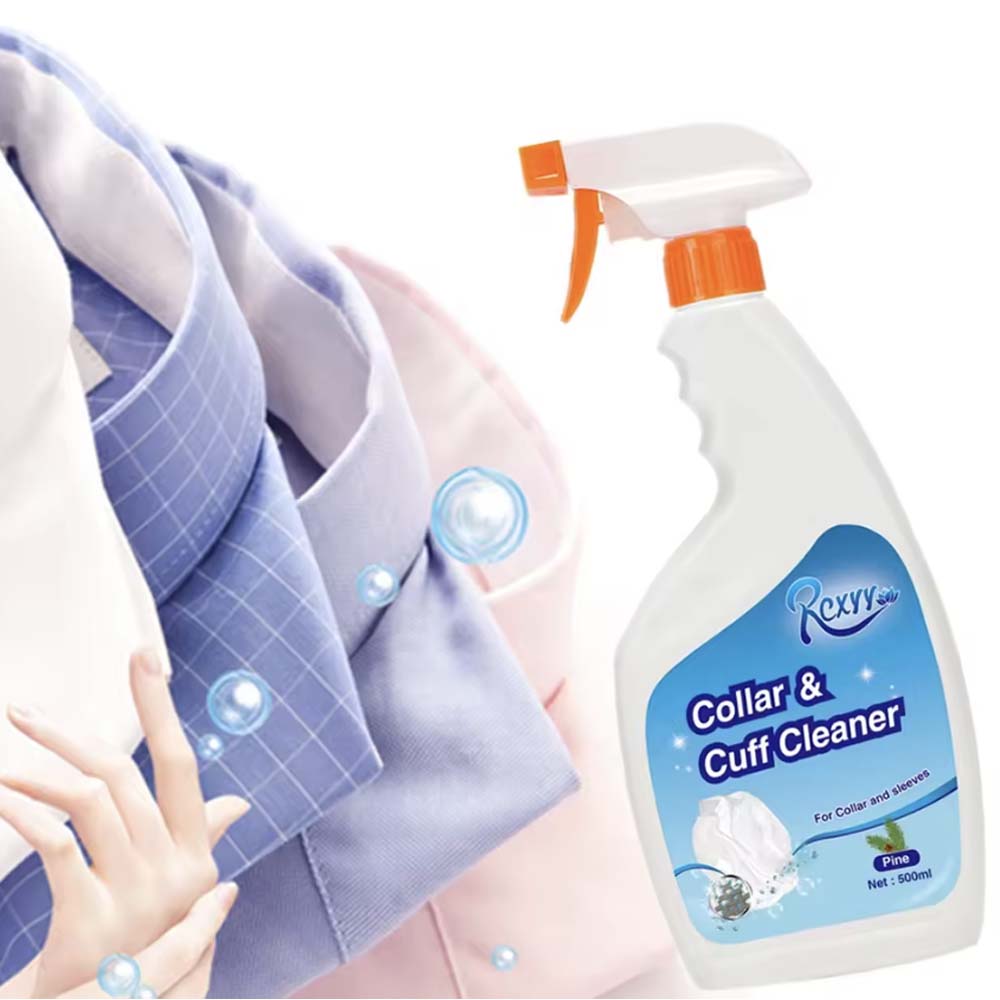 Collar & cuff cleaner spray: 500ml capacity, 15%-30% active ingredients, pine fragrance, 3-year shelf life.