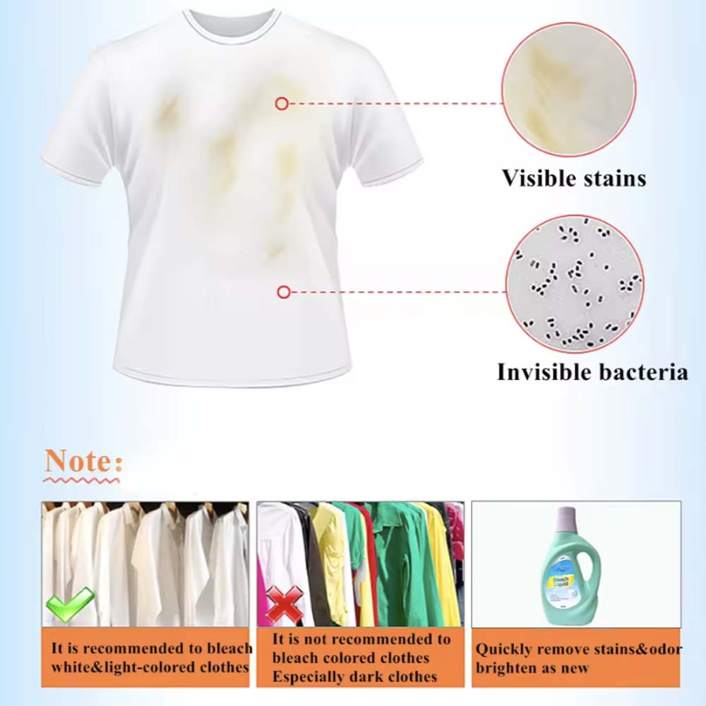 Core functions: High-efficiency stain removal, brightens white/light clothes, removes yellowing and mildew spots.