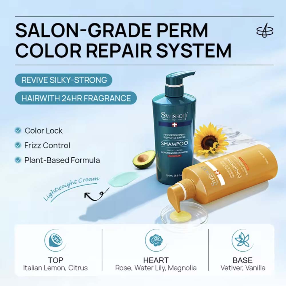 Deep damage repair, color curl protection, oil control, 72HR moisturizing and smoothing for hair.