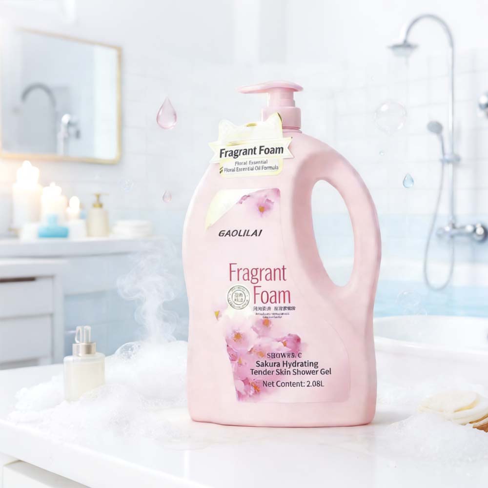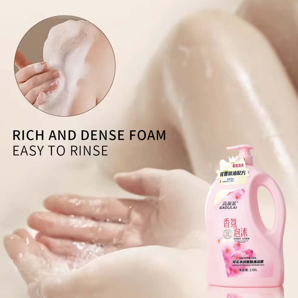 Nicotinamide shower gel: 2080ml gel form, Gaolilai brand, with glycerin and floral extracts, for adult females all skin types.