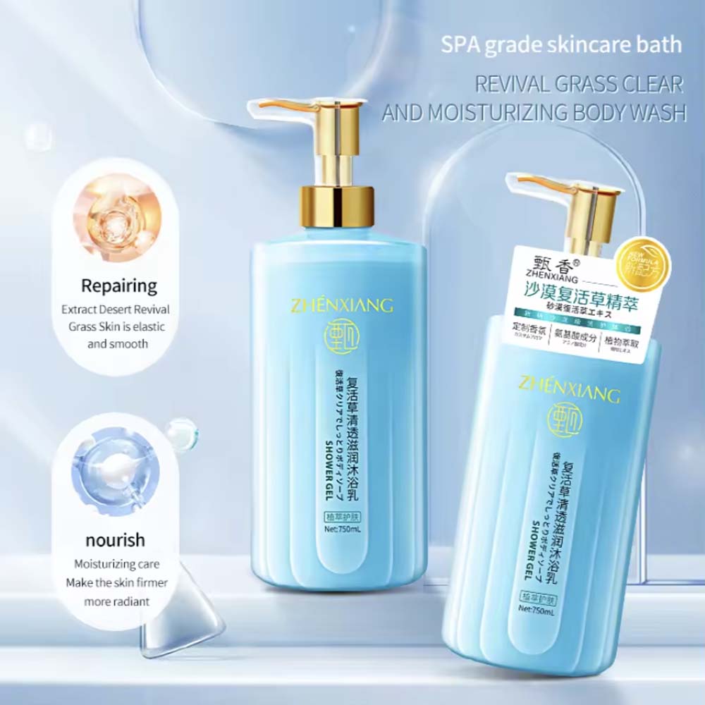 Organic herbal shower gel: 500/750ml gel form, ZhenXiang brand, amino acid & plant extract, unisex for adults all skin types.