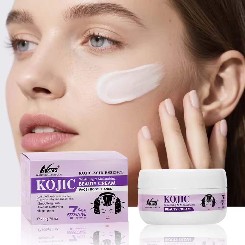 Kojic acid brightening cream: 200g cream form, Nary brand, organic vegan formula with collagen, for adult females all skin types.