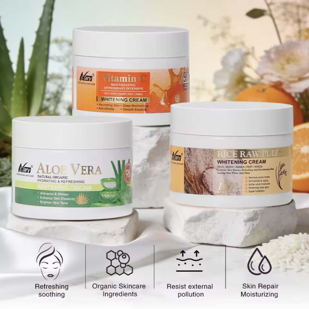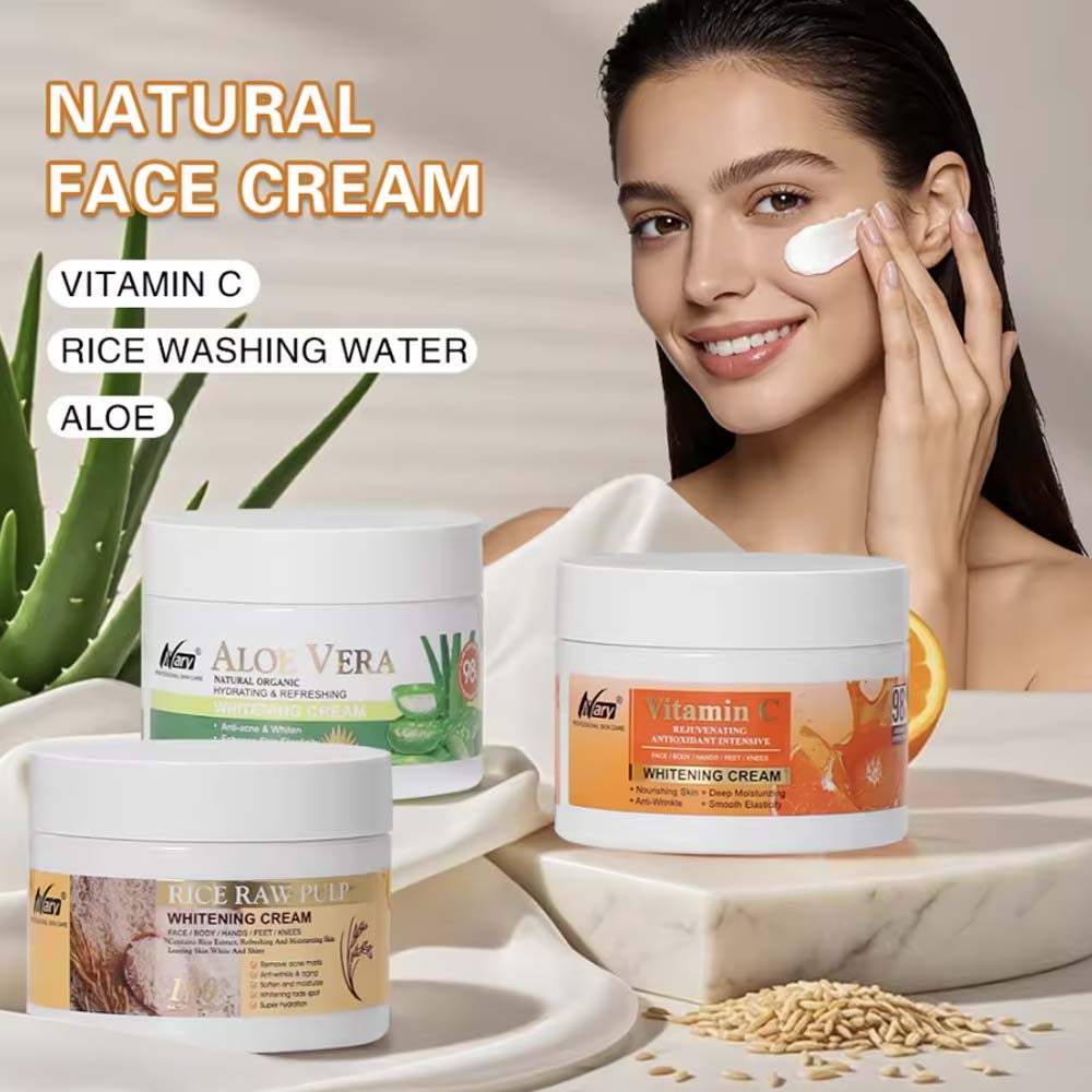 Nary organic cream set: 150g cream form, three variants of VC/aloe/rice pulp, organic herbal formula for adult females all skin types.