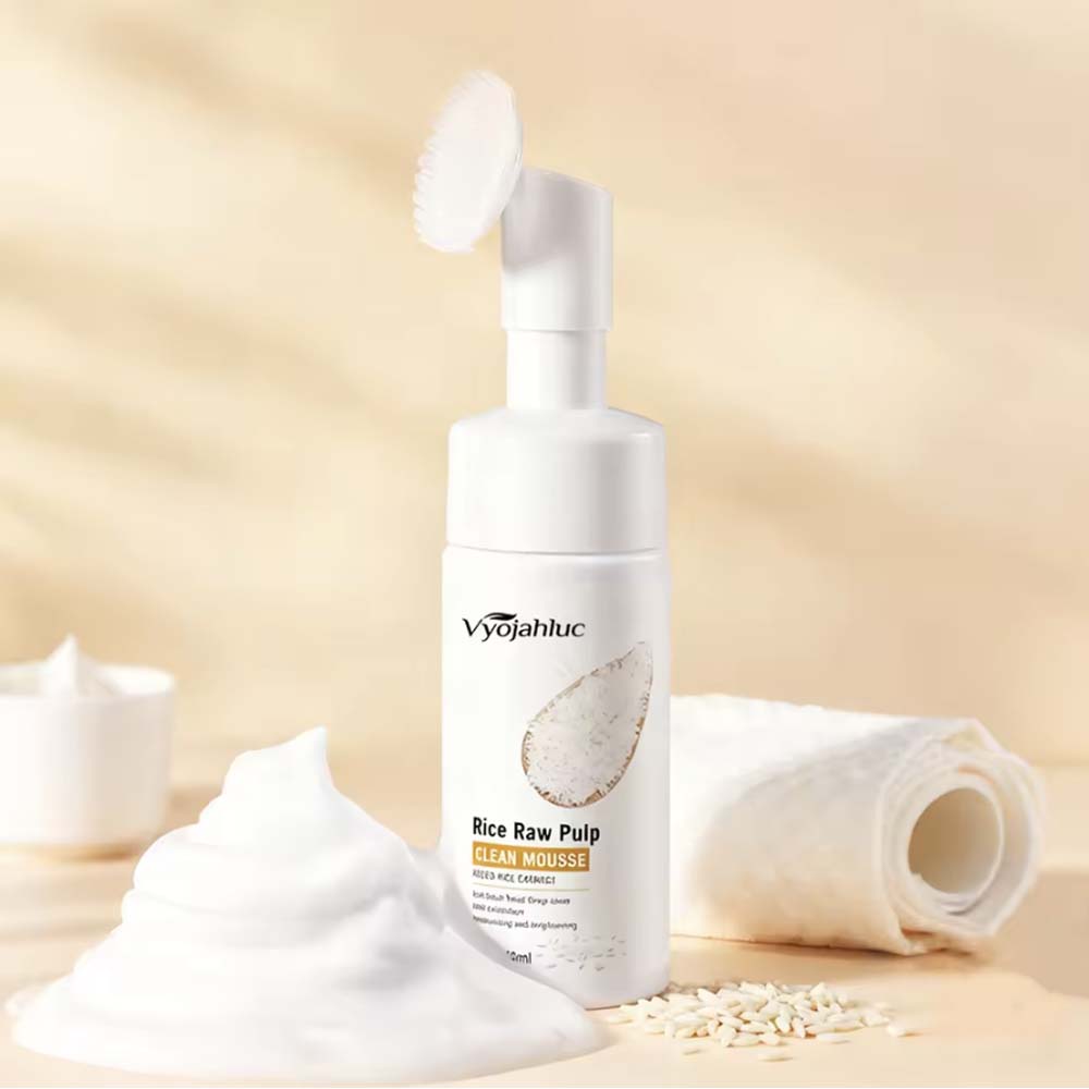 Rice raw pulp facial mousse: 120ml mousse form, OEM brand, rice extract as core ingredient, for adult females all skin types.