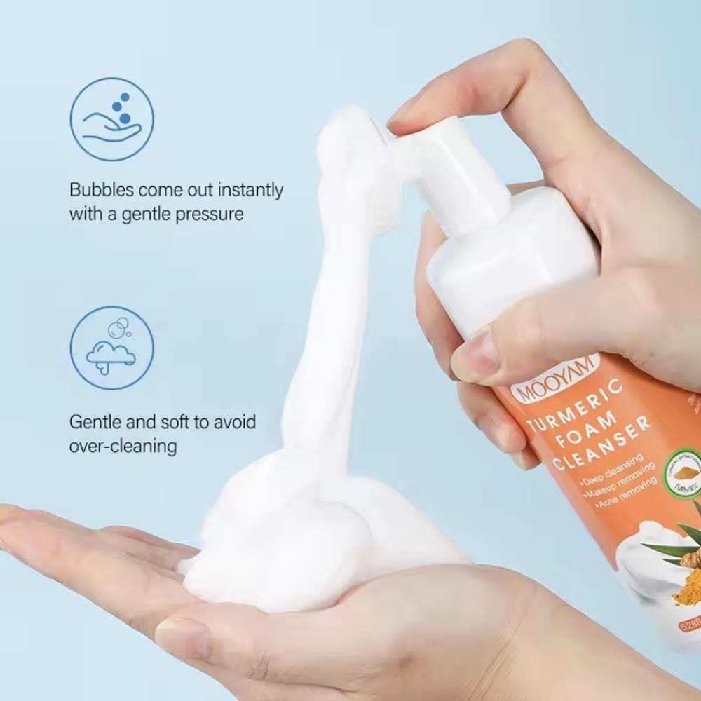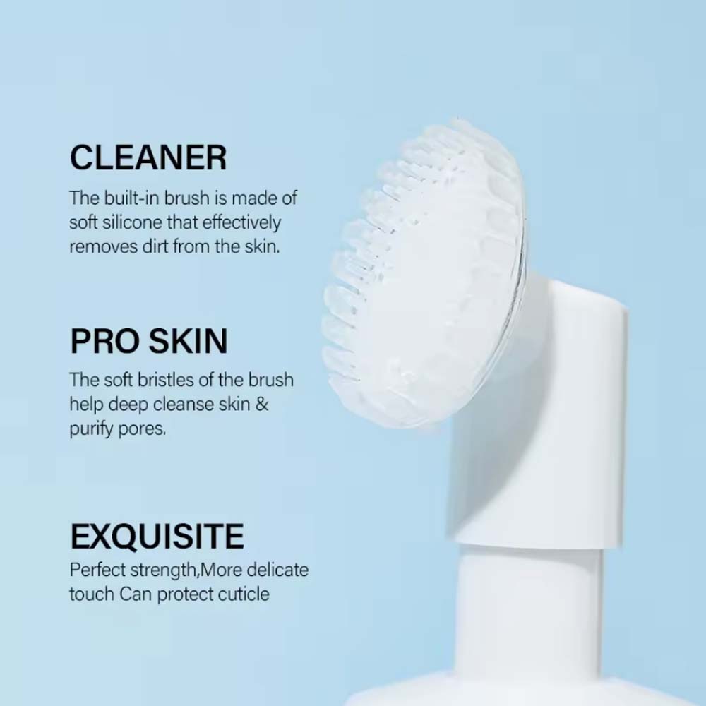 Product design: Built-in soft silicone brush head, one-press instant foaming, cloud-like delicate texture, no tightness after washing.