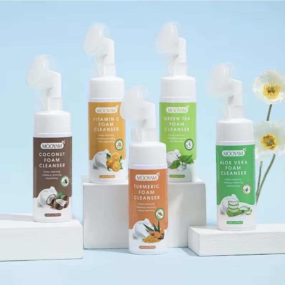 Multi-variant foam facial cleanser: 150ml foam form, Private label, 5 flavors (turmeric/green tea/aloe vera/coconut/Vitamin C).