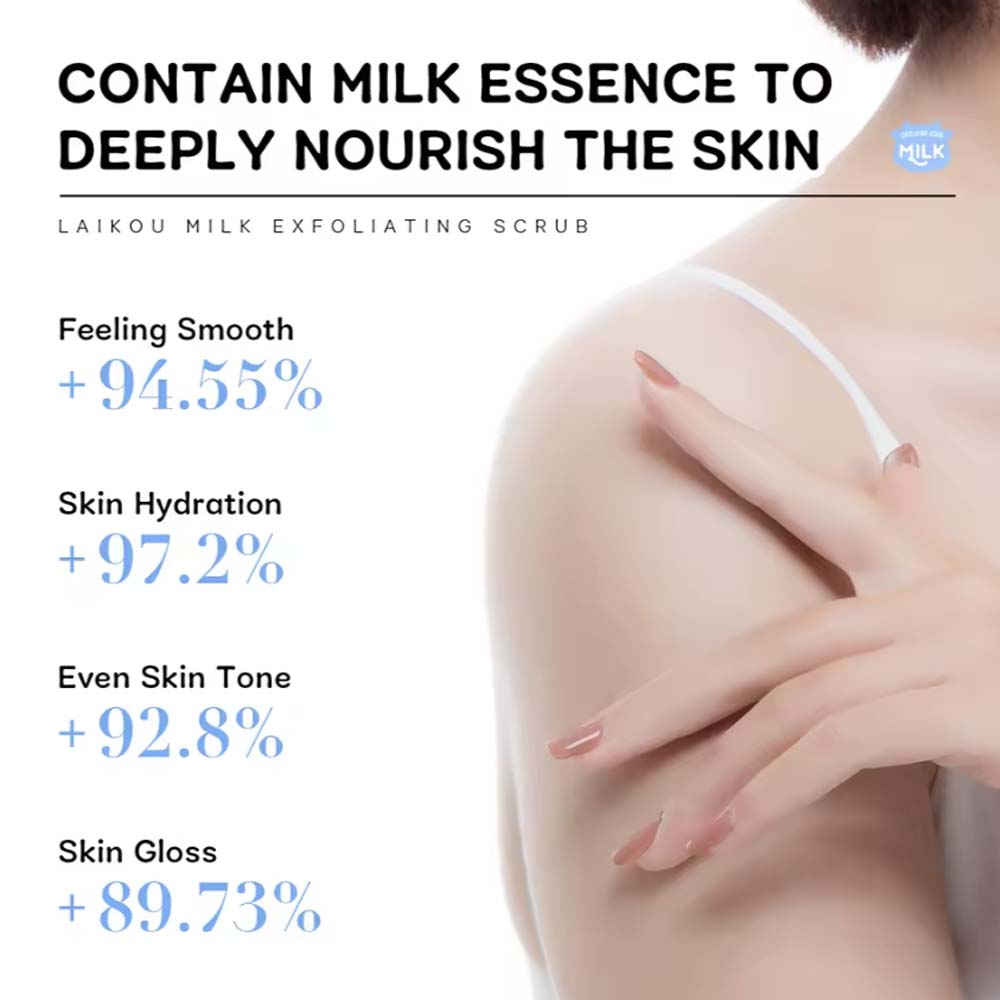 Product features: White color, milk fragrance, cream-milk texture, fine soft particles, non-irritating and easy to clean, visible effect on skin improvement.