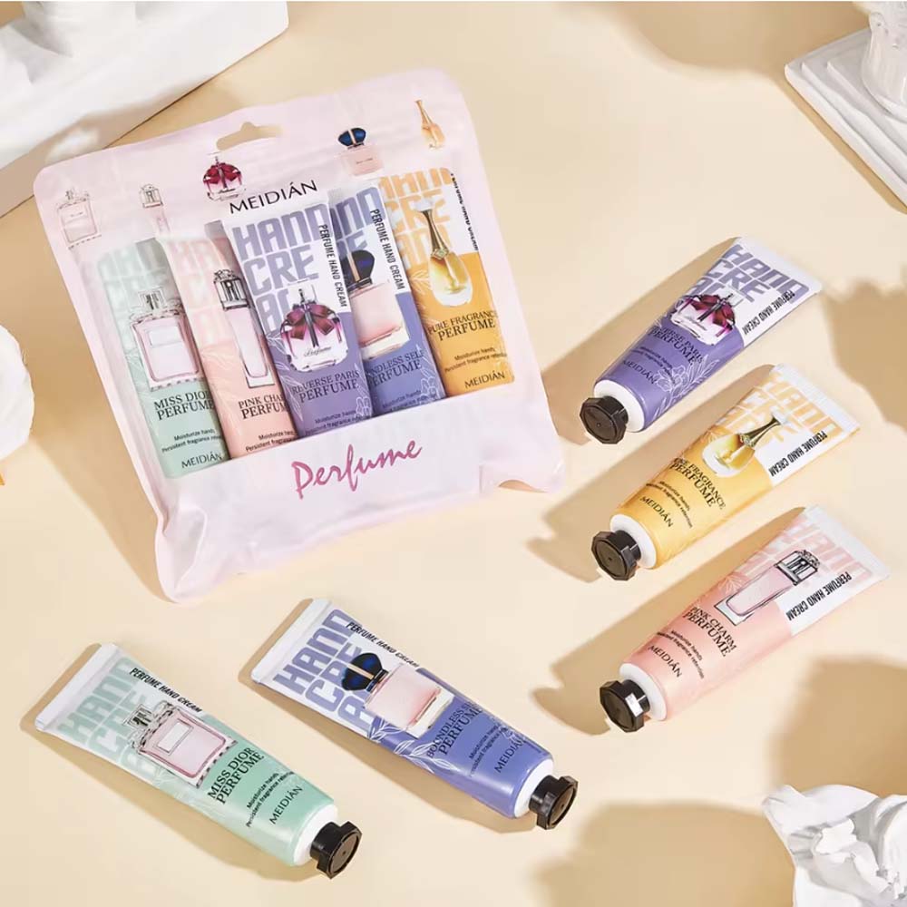 5-in-1 perfume hand cream set: 30g×5 cream form, Private label, natural herbal formula, for adult females normal/dry skin types.