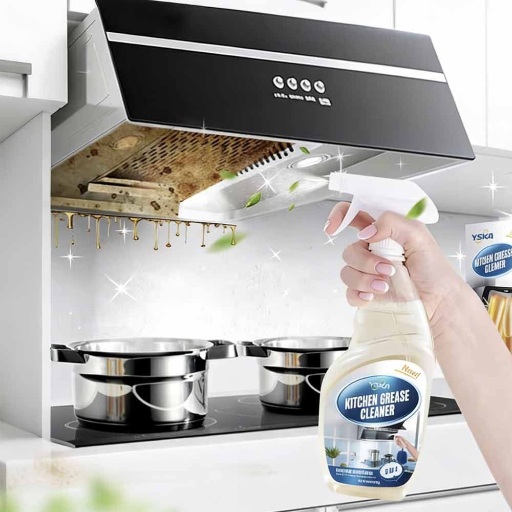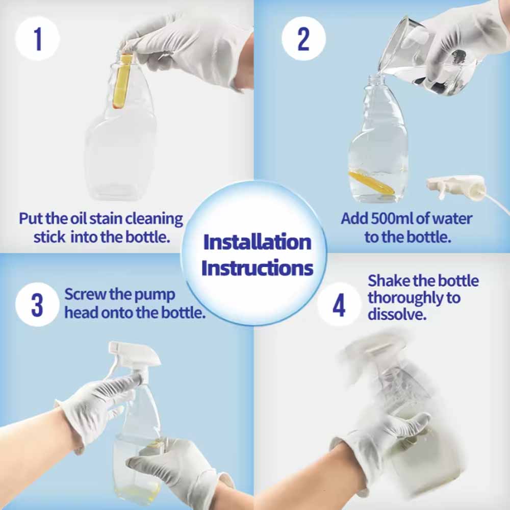 Kitchen oil stain cleaner: 15g stick=500ml liquid, 8 sticks+1 bottle/set, YSKA/Custom brand, 50%-80% active ingredients, lemon scent.
