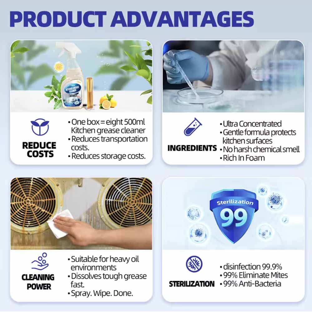 Core efficacy: 5-in-1 powerful cleaning, fast dissolves tough grease, 99.9% disinfection, 99% anti-bacteria and mite elimination.