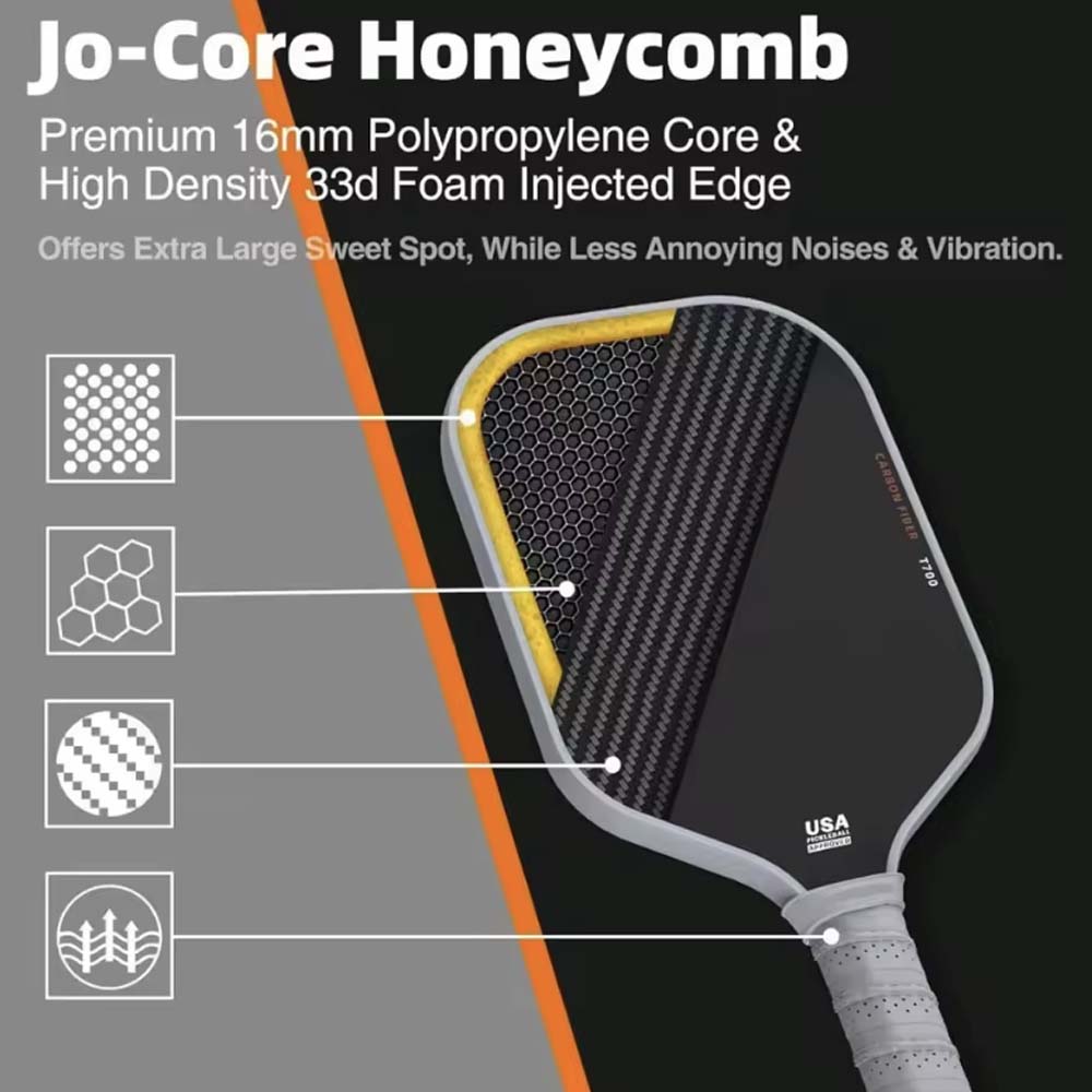 T700 Carbon Fiber Surface: Enhances durability and hitting precision.