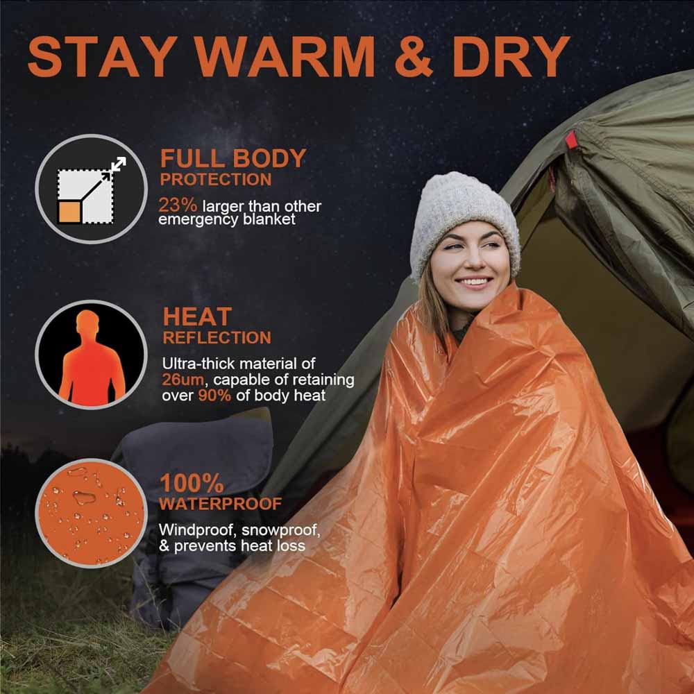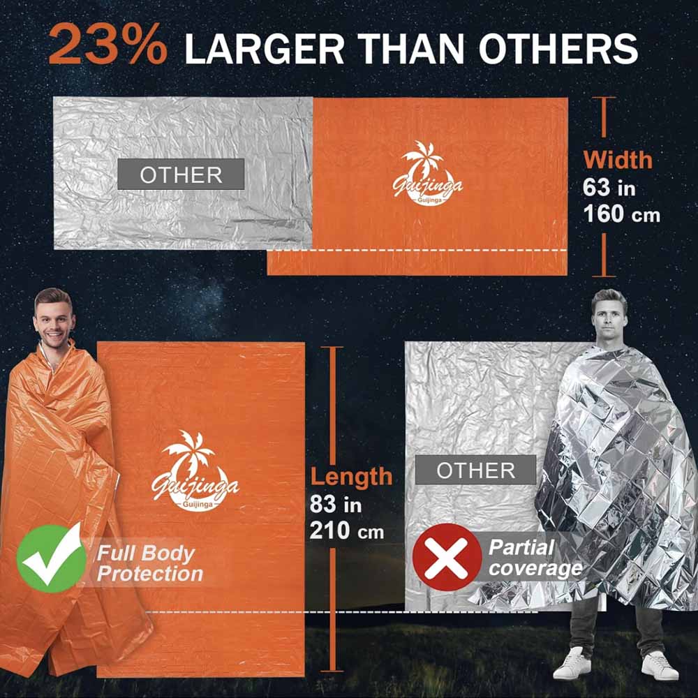Mylar core material: 26-micron PE, 2x thicker, 83"x63" size (23% larger), full-body protection for survival kits.