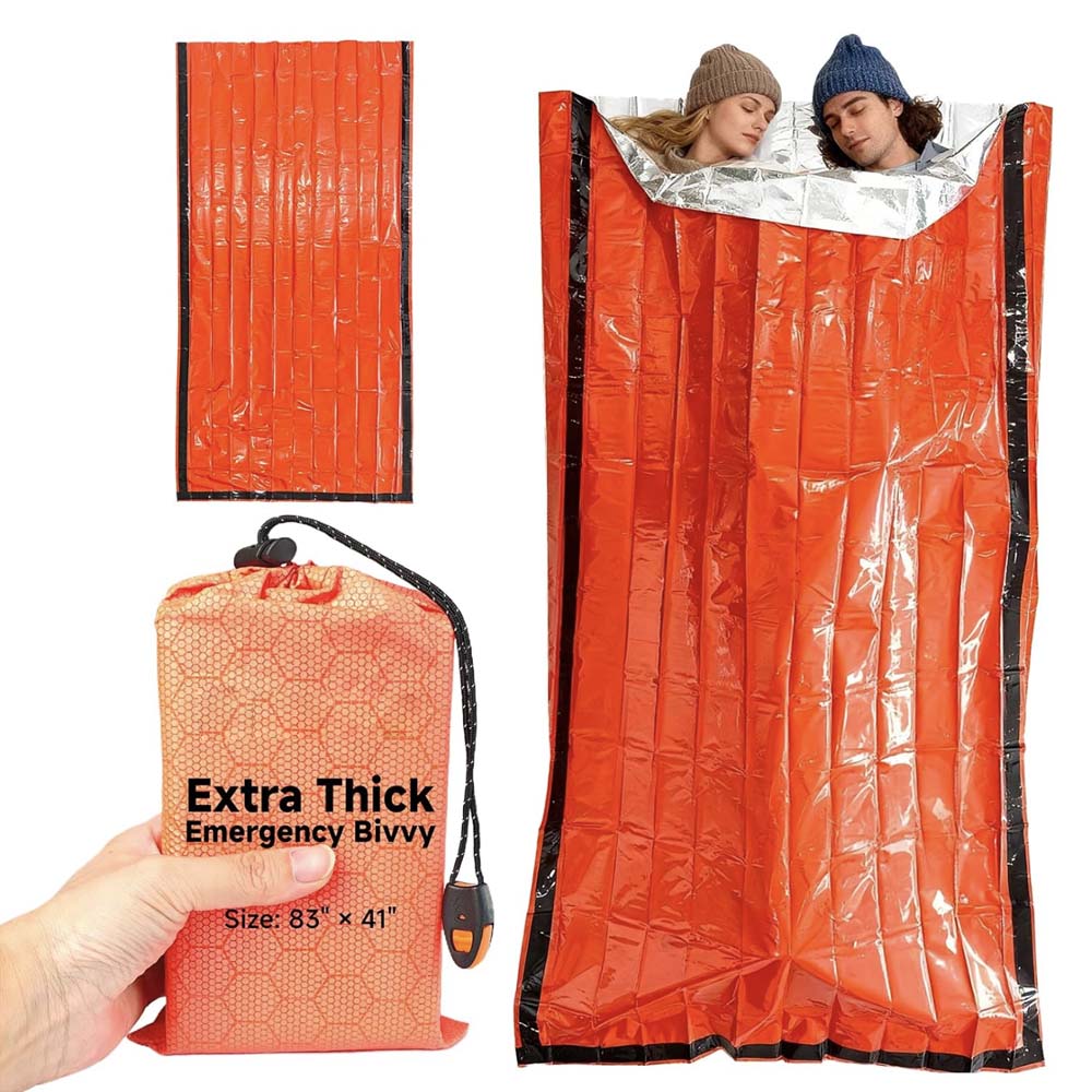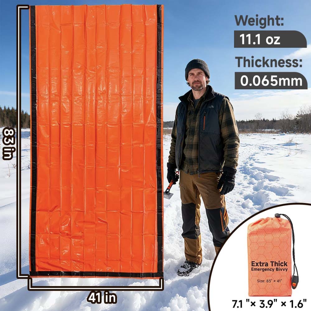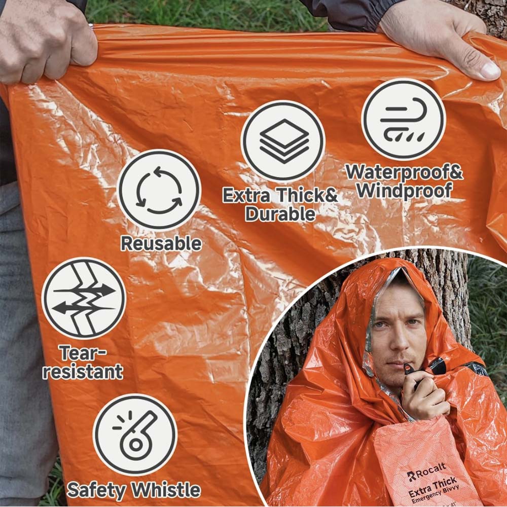 Multi-functional survival tool: Can be used as emergency blanket, ground tarp, rain cover, rescue signal for outdoor and disaster preparedness.