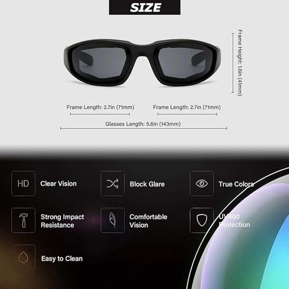 Wind/dust/fog proof: Inner sponge blocks debris, anti-fog airbag prevents fogging, stops flying objects from entering eyes.