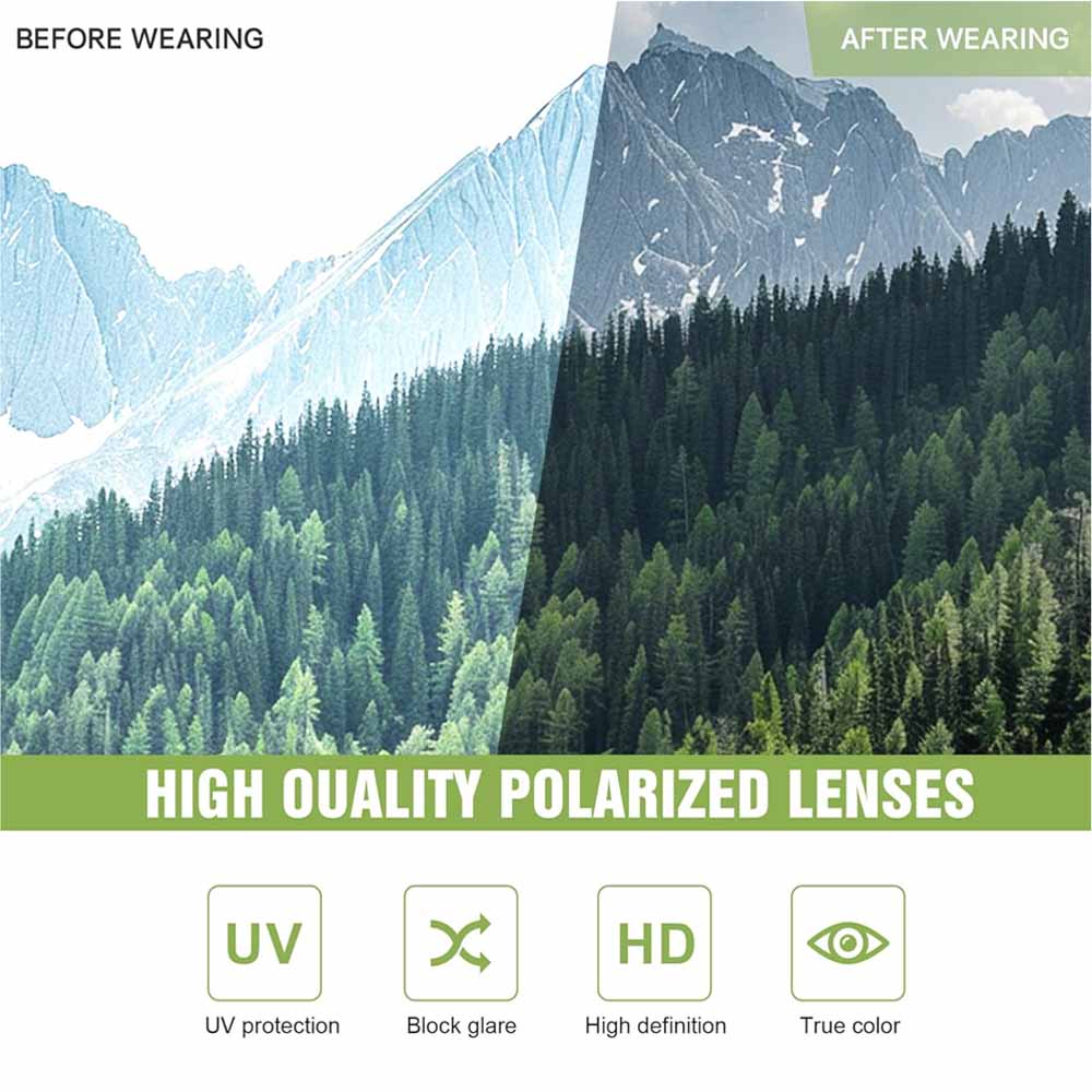 UV protection & HD polarized: Blocks harmful UV rays, reduces glare and reflections for clear outdoor vision.