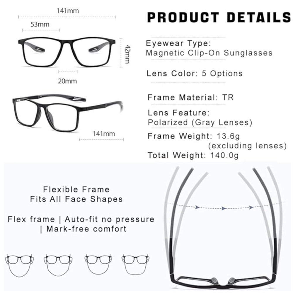 Dual magnetic & anti-slip design: Secure fit with prescription glasses, anti-slip bridge, comfortable for all face shapes.