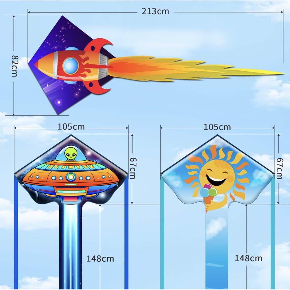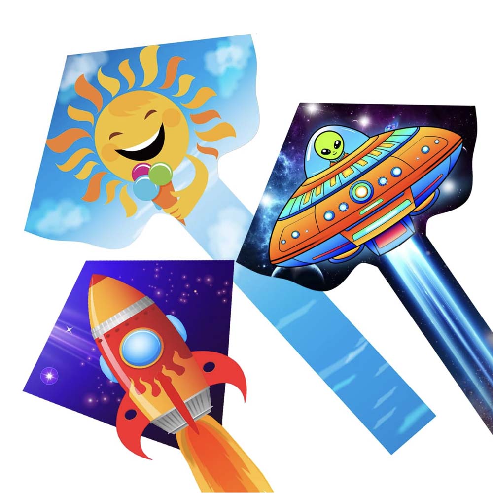 3-pack all-age kite set: Vibrant styles, durable design, suitable for kids, beginners and experienced flyers.