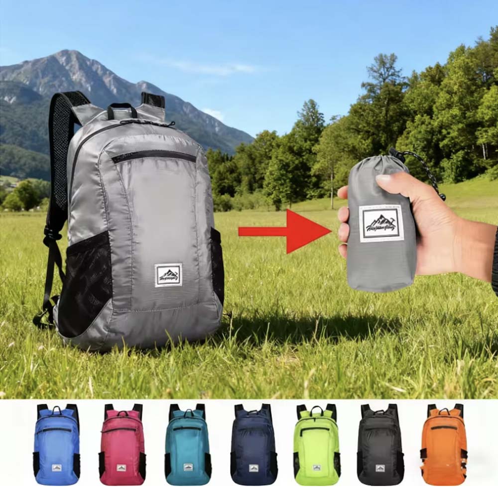 Foldable backpack with ultralight feature, ideal for minimalist travelers and outdoor lovers.