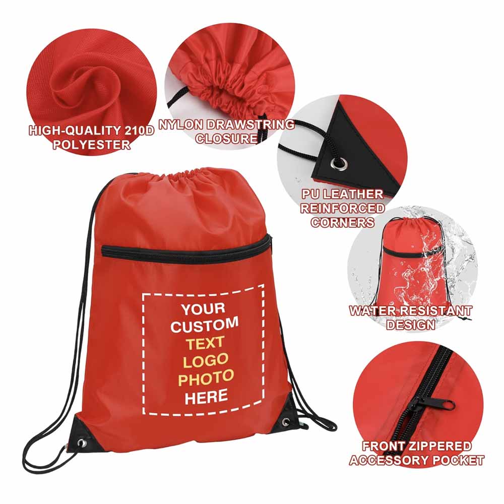 Practical Design: 14"W×18"H (35.56×45.72cm), 5-6kg capacity; main compartment + front zipper pocket, adjustable drawstring for backpack-style carrying.