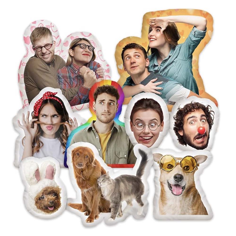 Create pillow shaped like family, lovers, or pets with photos; captures precious moments.