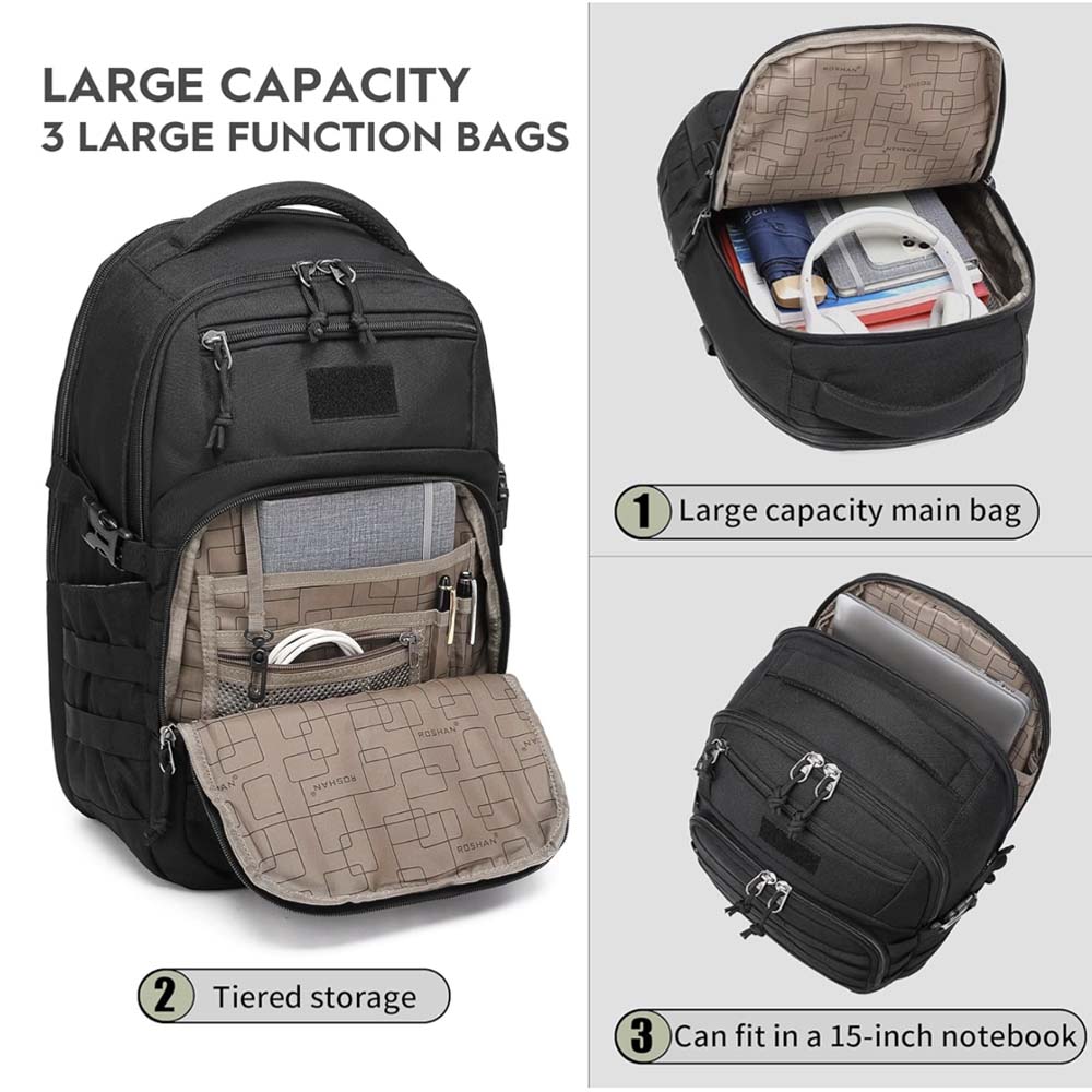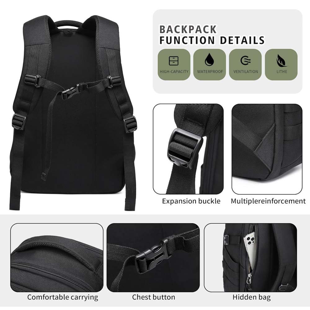 Comfortable & practical: Heavy-duty zippers, drawstring, load compression system, breathable padded straps.