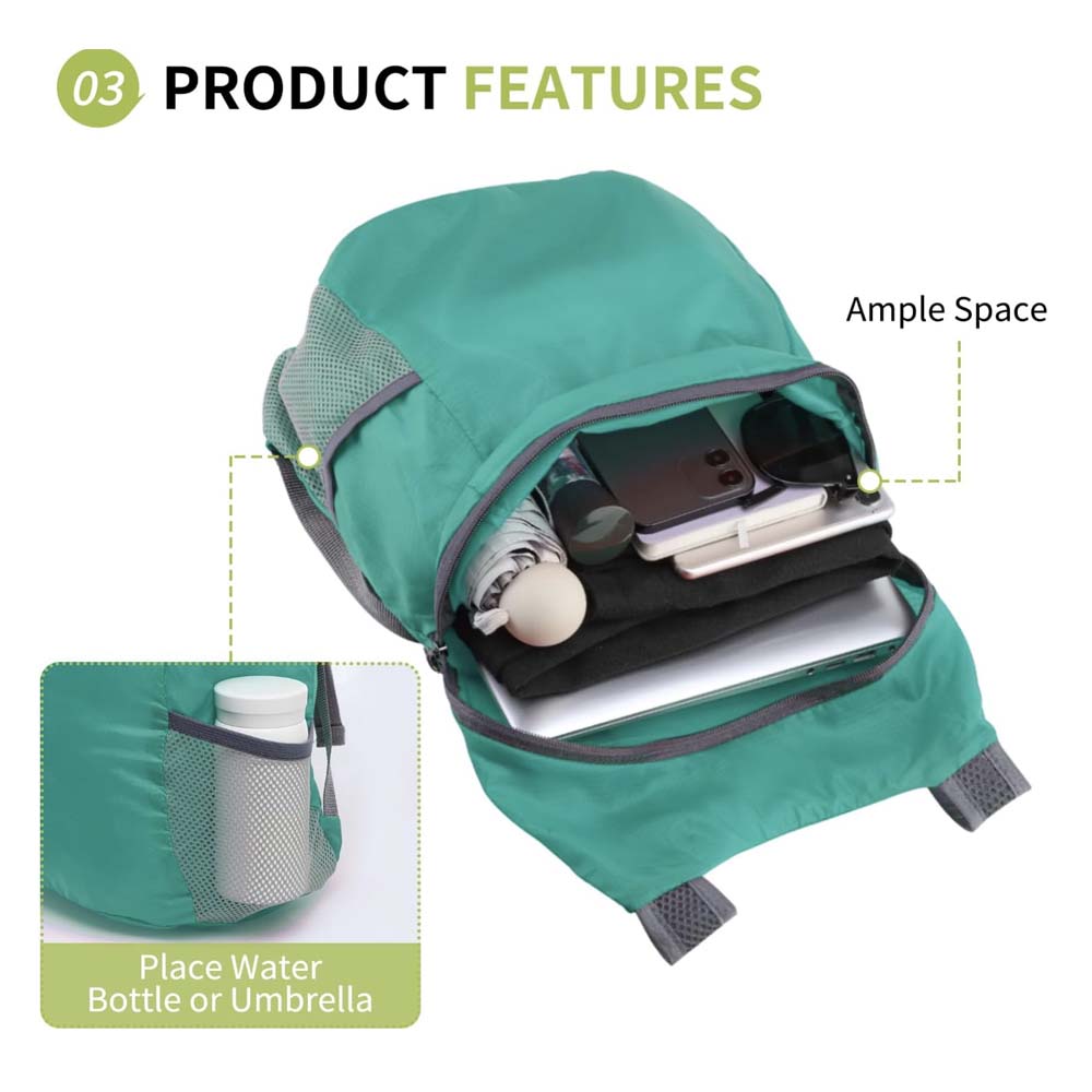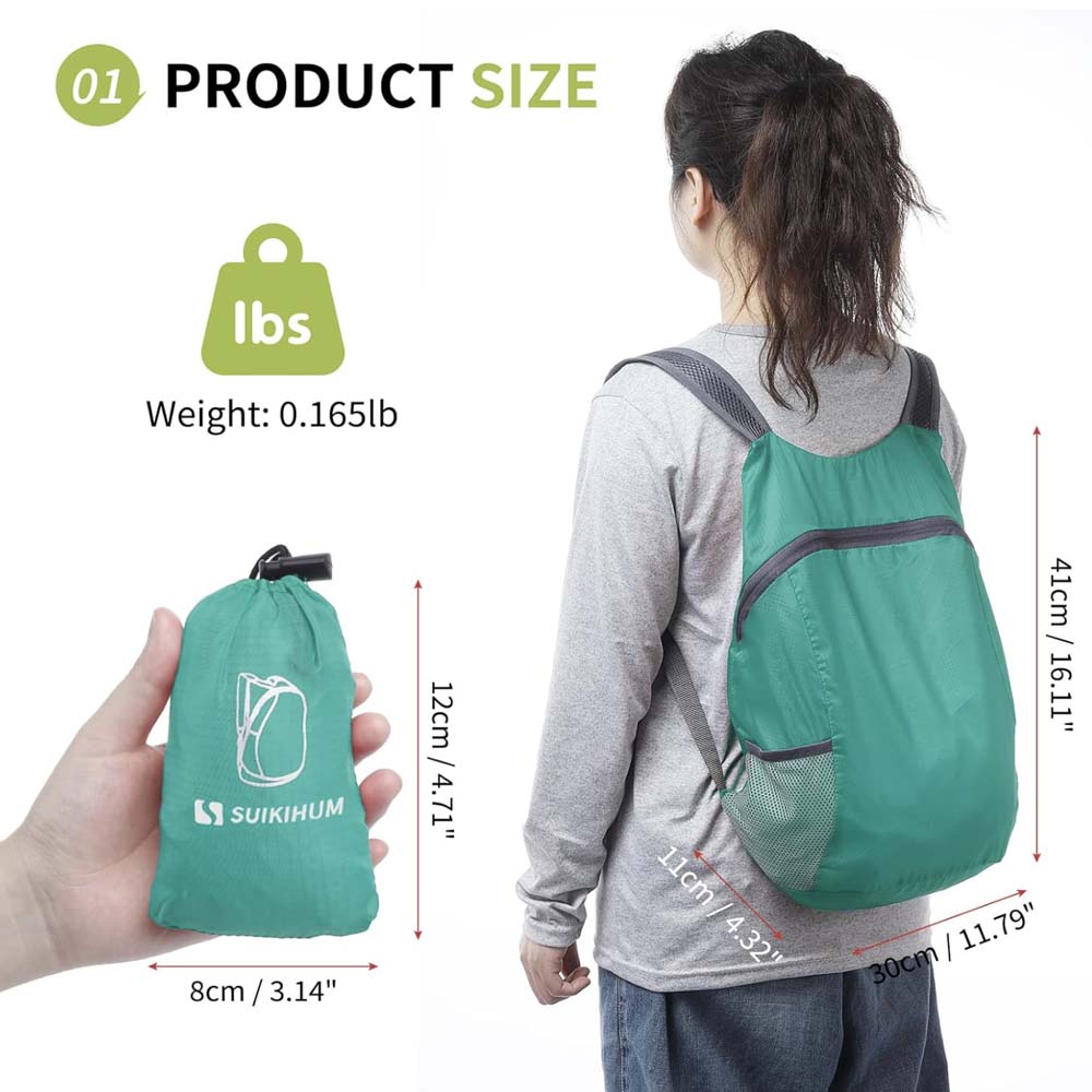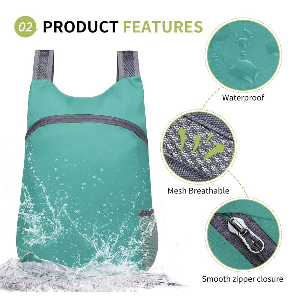 Ultra-lightweight & foldable: 20L capacity, 2.3oz weight, folds into compact size for space-saving storage.
