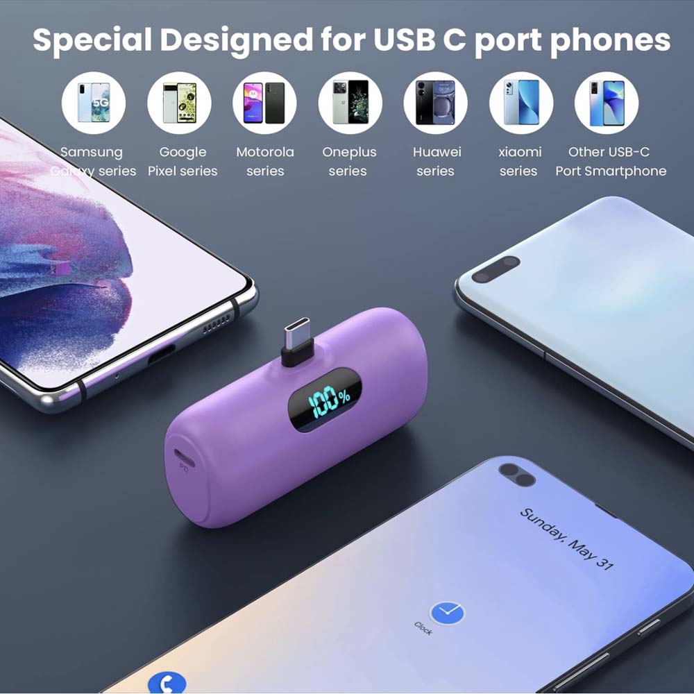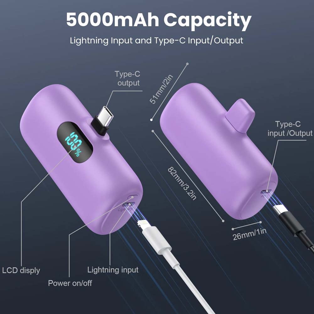 5000mAh true capacity: Suitable for 18W below devices, provides ~0.8-1.2 charges for Android phones.