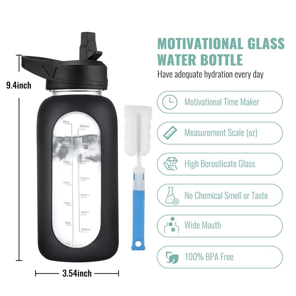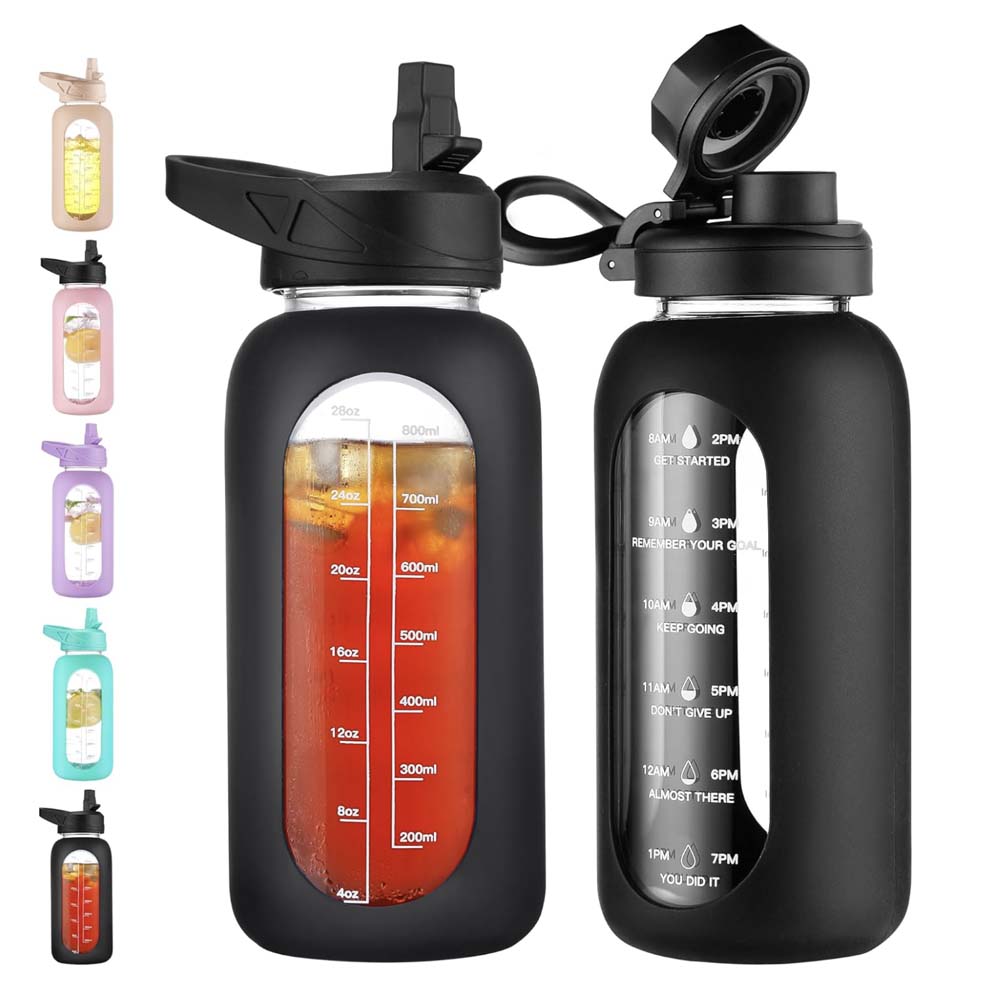 32oz Silicone Sleeve Glass Water Bottle