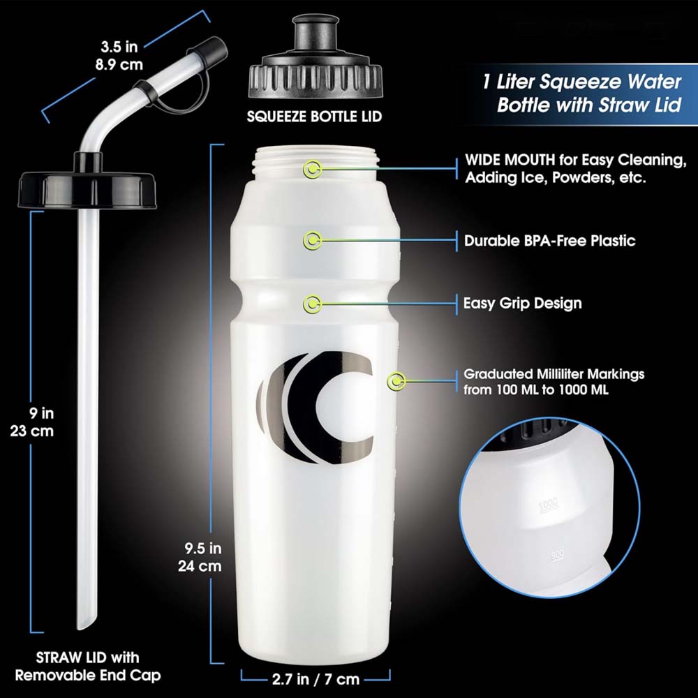 1L (34oz) BPA-free design: Durable, suitable for active lifestyles, gym, sports and daily use.