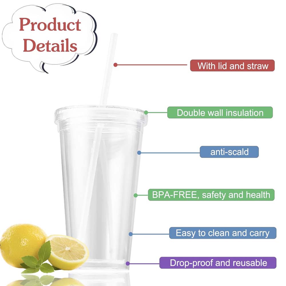 Safe insulated material: 16oz BPA-free polypropylene, double wall design prevents condensation and maintains liquid temperature.